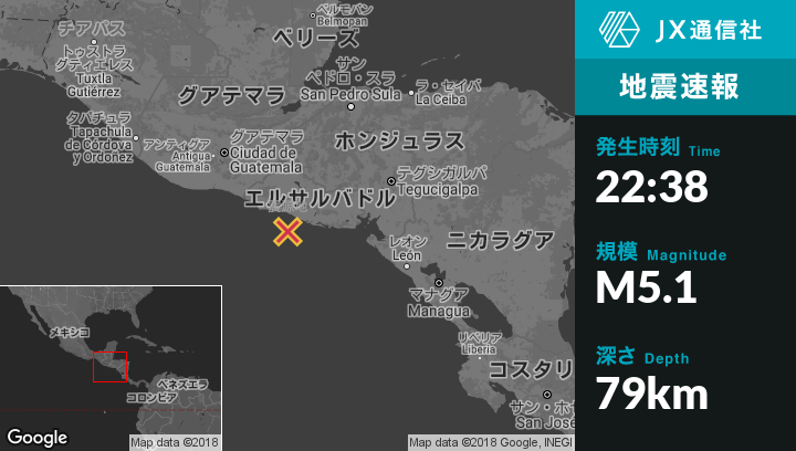| 震源地 | エルサルバドルのLa Libertadから南南東29kmの地点 |