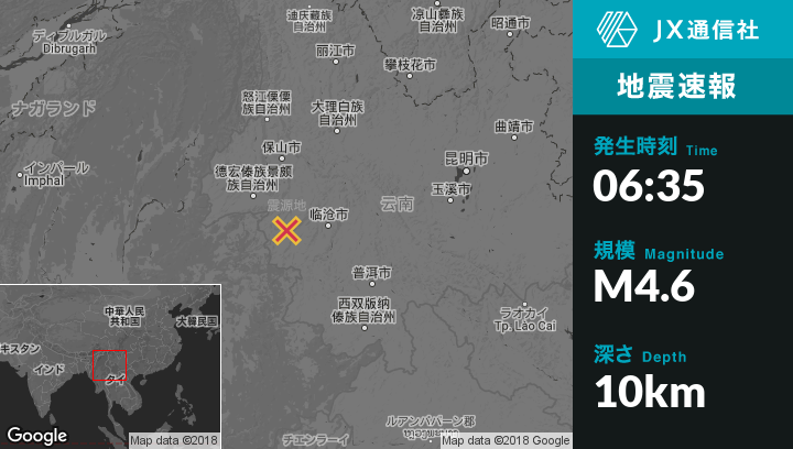 1月04日 06:35頃、中国のDedangから南11kmの地点でM4.6の地震がありました。