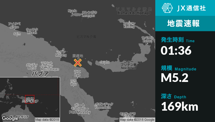 | 震源地 | パプアニューギニアのLaeから北136kmの地点 |