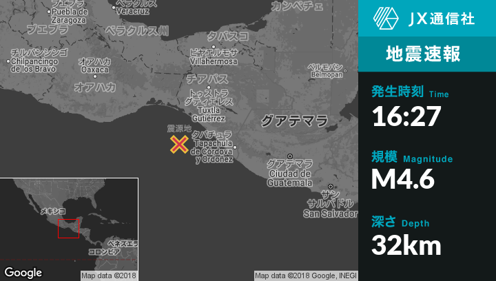 | 震源地 | メキシコのTres Picosから南西99kmの地点 |