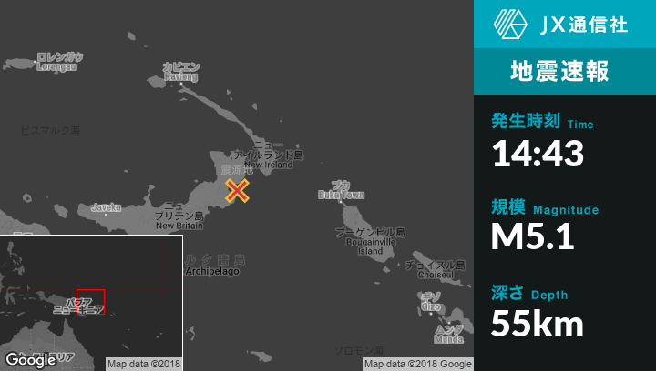 | 震源地 | パプアニューギニアのKokopoから南75kmの地点 |