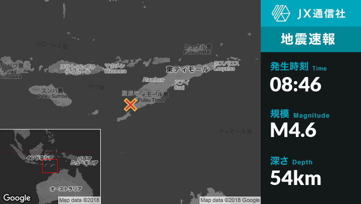 8月27日 08:46頃、インドネシアのKupangから西北西22kmの地点でM4.6の地震がありました。