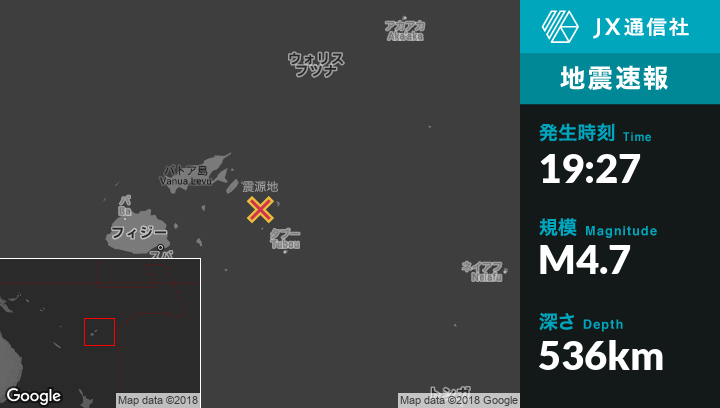 | 震源地 | フィジーのLambasaから南東160kmの地点 |