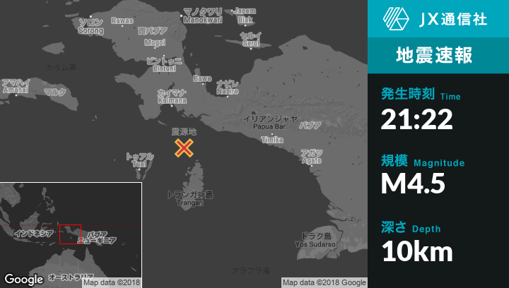 | 震源地 | インドネシアのDoboから北102kmの地点 |