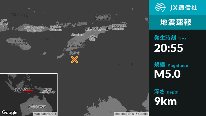 | 震源地 | インドネシアのKupangから南東100kmの地点 |