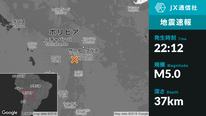 | 震源地 | ボリビアのVallegrandeから東南東29kmの地点 |