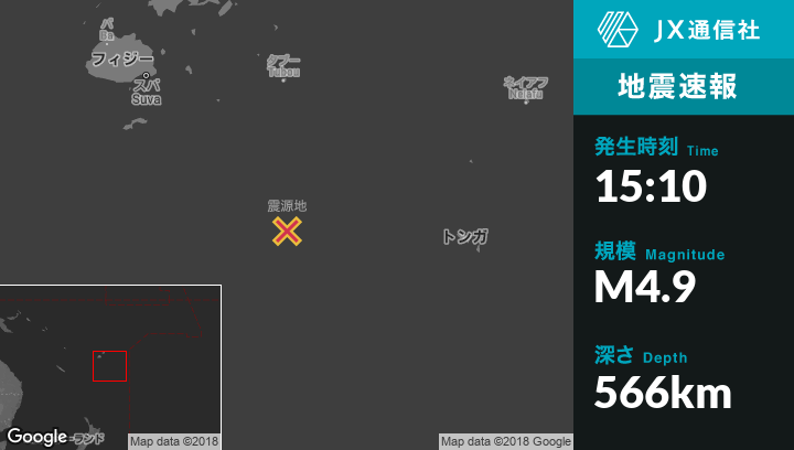 | 震源地 | フィジーのNdoi Islandから南32kmの地点 |