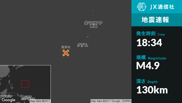 | 震源地 | グアムのMerizo Villageから西南西153kmの地点 |