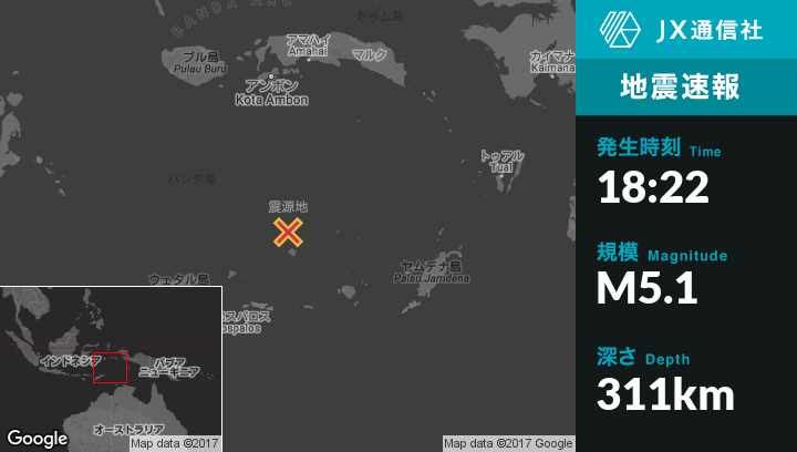 | 震源地 | インドネシアのAmahusuから南321kmの地点 |