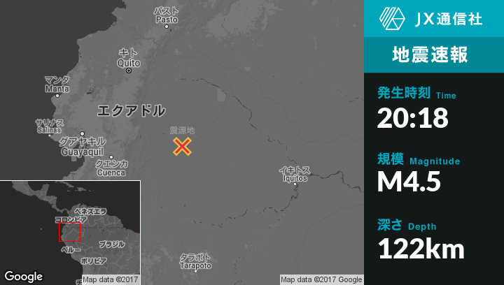 | 震源地 | エクアドルのMacasから東148kmの地点 |