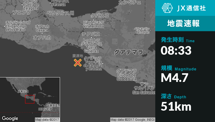 | 震源地 | メキシコのTres Picosから南西105kmの地点 |