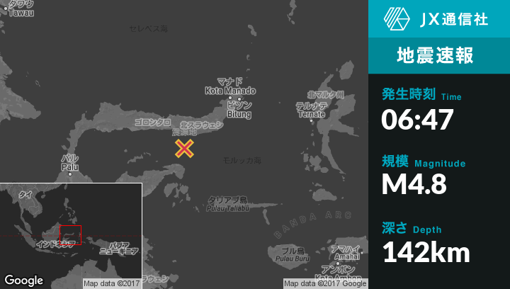 | 震源地 | インドネシアのBilungalaから南南東46kmの地点 |