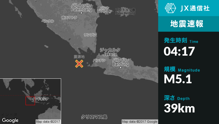 | 震源地 | インドネシアのKotaagungから南112kmの地点 |