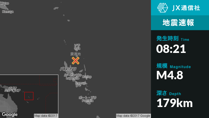 | 震源地 | バヌアツのSolaから南南西69kmの地点 |