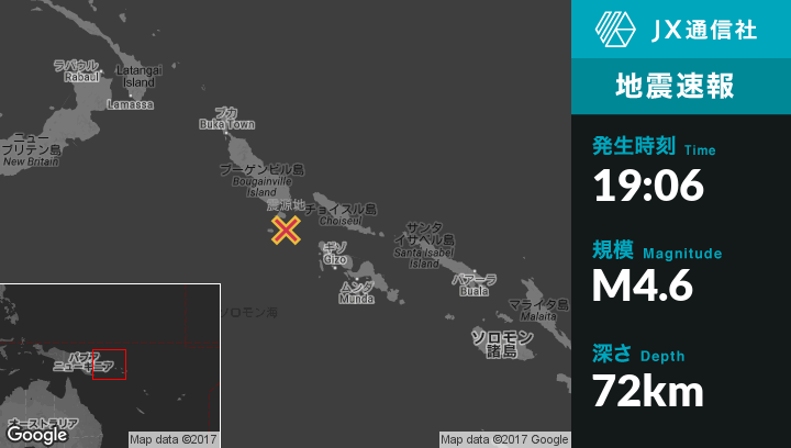 | 震源地 | ソロモン諸島のChirovangaから南西102kmの地点 |