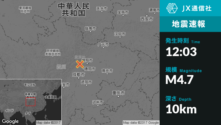| 震源地 | 中国のJiannanから北北西20kmの地点 |