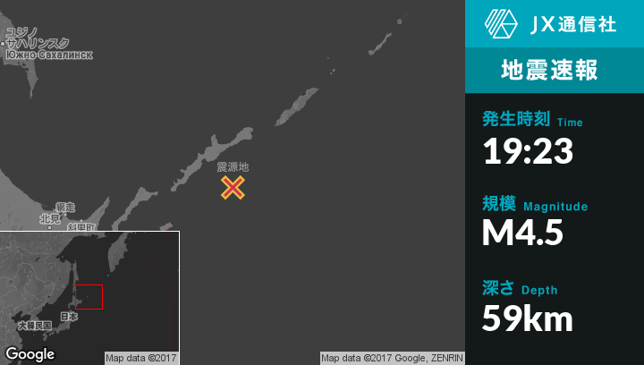 | 震源地 | ロシアのKuril'skから南南東81kmの地点 |