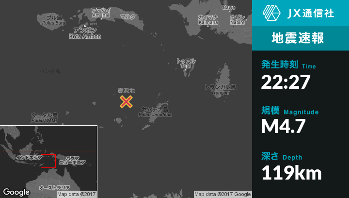 | 震源地 | インドネシアのSaumlakiから北西177kmの地点 |