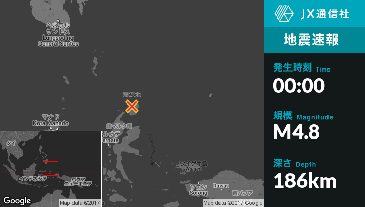 | 震源地 | インドネシアのTobeloから北北東98kmの地点 |