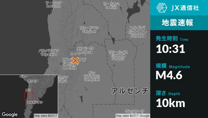 | 震源地 | アルゼンチンのMendozaから西南西79kmの地点 |