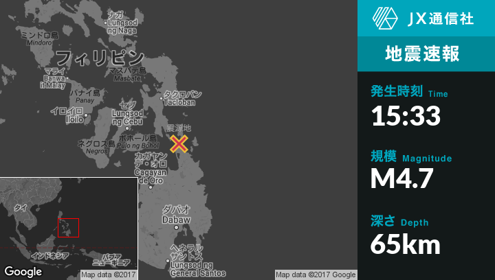 | 震源地 | フィリピンのDinagatから西南西7kmの地点 |
