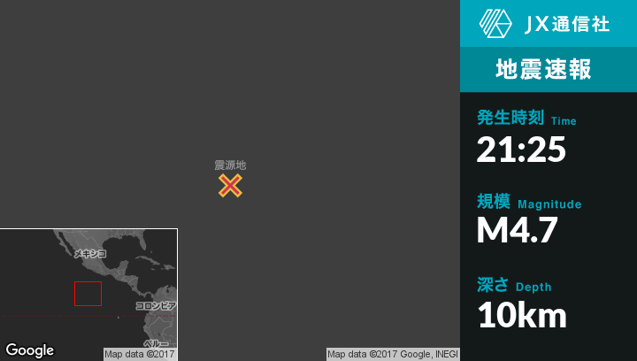 | 震源地 | フランスのClipperton Islandから東南東700kmの地点 |