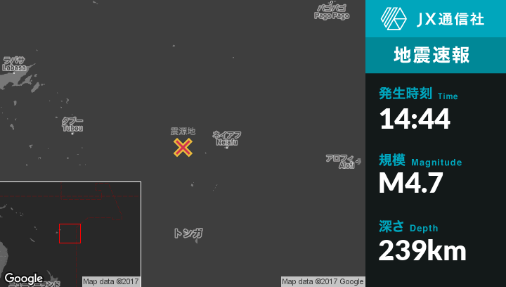 | 震源地 | トンガのNeiafuから西146kmの地点 |