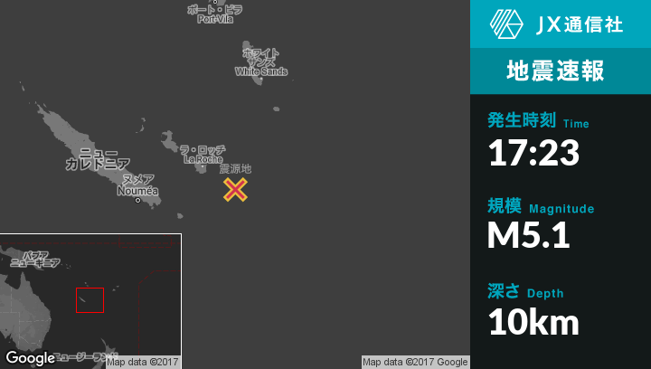 | 震源地 | ニューカレドニアのTadineから東南東103kmの地点 |
