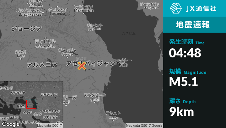 | 震源地 | アゼルバイジャンのBardaから東南東20kmの地点 |