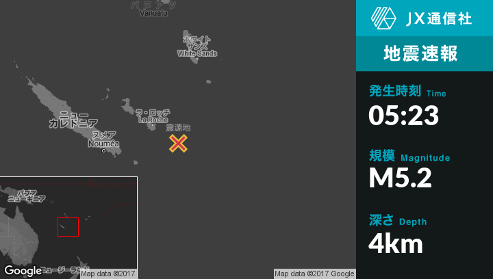 | 震源地 | ニューカレドニアのTadineから東南東107kmの地点 |