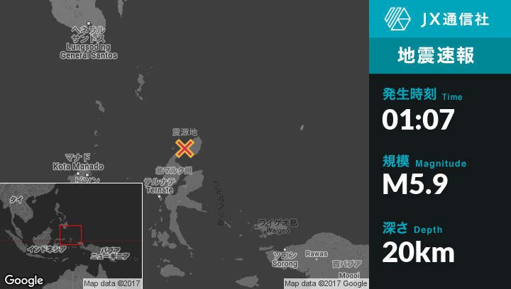 | 震源地 | インドネシアのTobeloから北北東73kmの地点 |