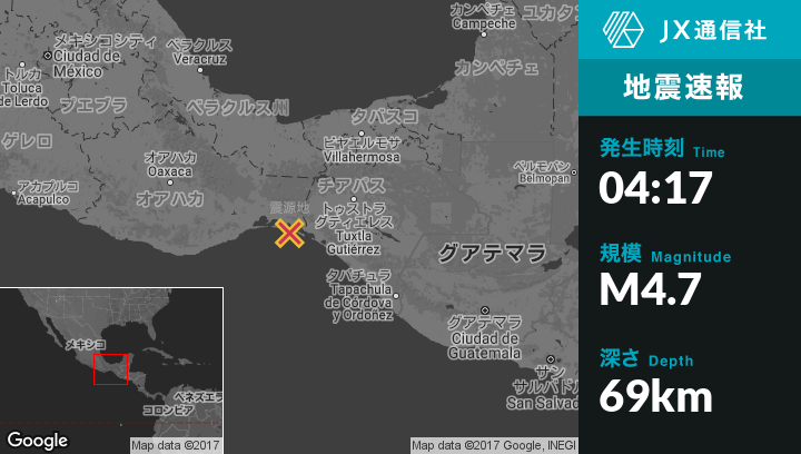 | 震源地 | メキシコのIxhuatanから南東19kmの地点 |