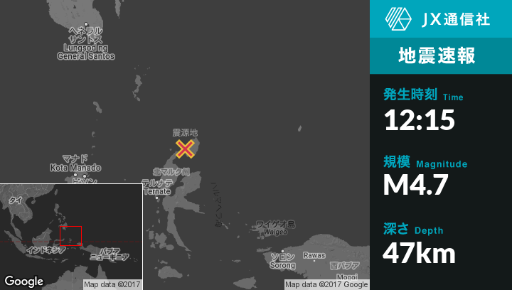 | 震源地 | インドネシアのTobeloから北北東78kmの地点 |