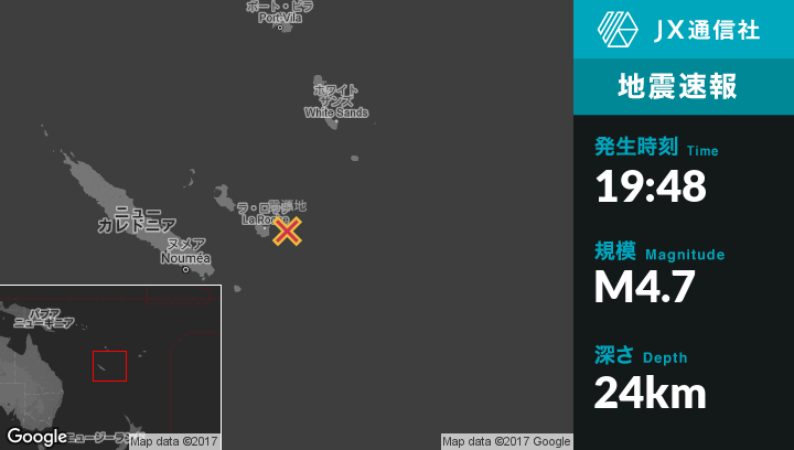| 震源地 | ニューカレドニアのTadineから東北東61kmの地点 |