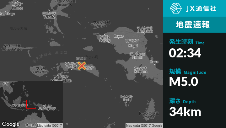 | 震源地 | インドネシアのAmahaiから東北東89kmの地点 |