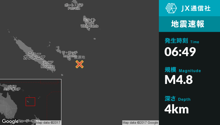 | 震源地 | ニューカレドニアのTadineから東南東92kmの地点 |