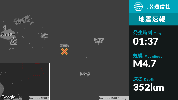 | 震源地 | フィジーのNdoi Islandから北東242kmの地点 |