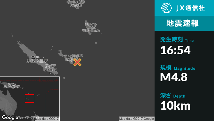 | 震源地 | ニューカレドニアのTadineから東北東59kmの地点 |