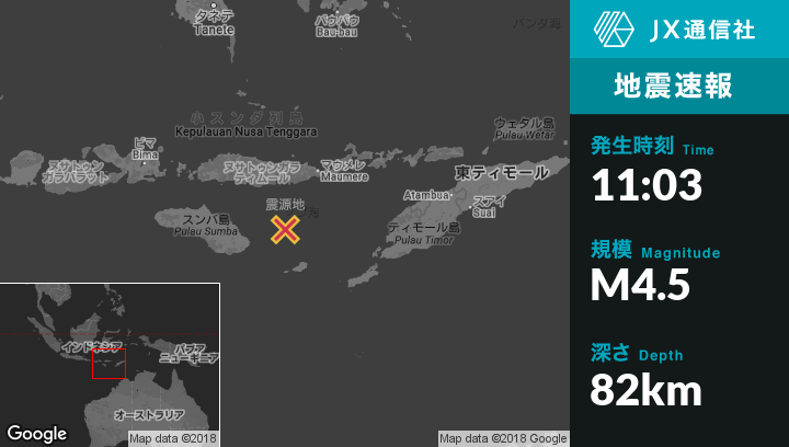 | 震源地 | インドネシアのBenggaから南南東88kmの地点 |