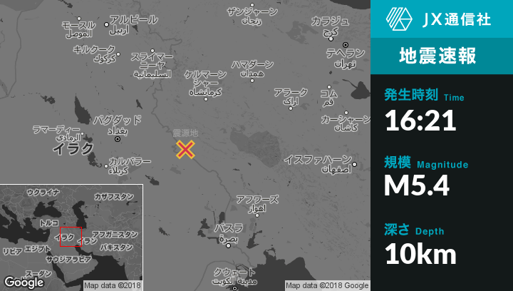 1月11日 16:21頃、イランのMehranから東27kmの地点でM5.4の地震がありました。