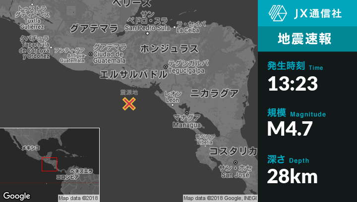 | 震源地 | エルサルバドルのPuerto El Triunfoから南南西81kmの地点 |