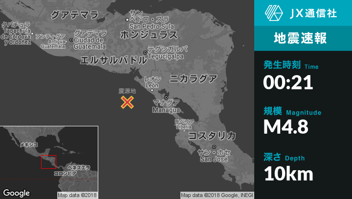 | 震源地 | ニカラグアのJiquililloから南西100kmの地点 |