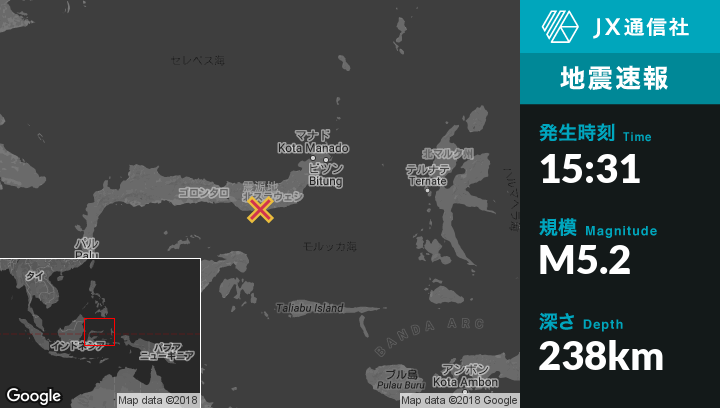 | 震源地 | インドネシアのMolibaguから西北西34kmの地点 |