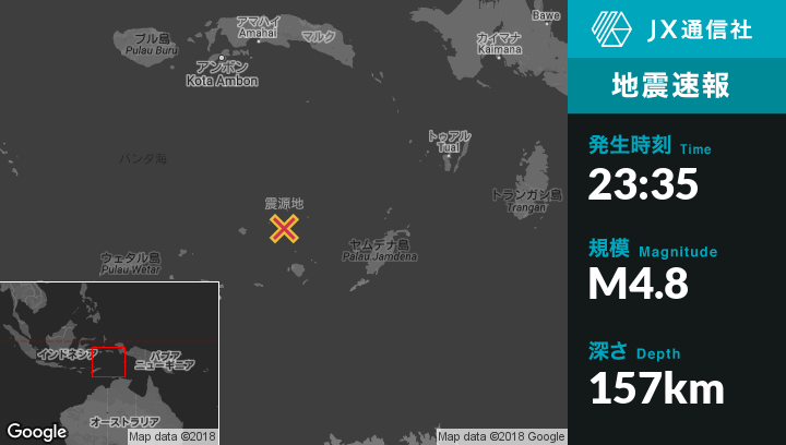 | 震源地 | インドネシアのSaumlakiから西北西233kmの地点 |
