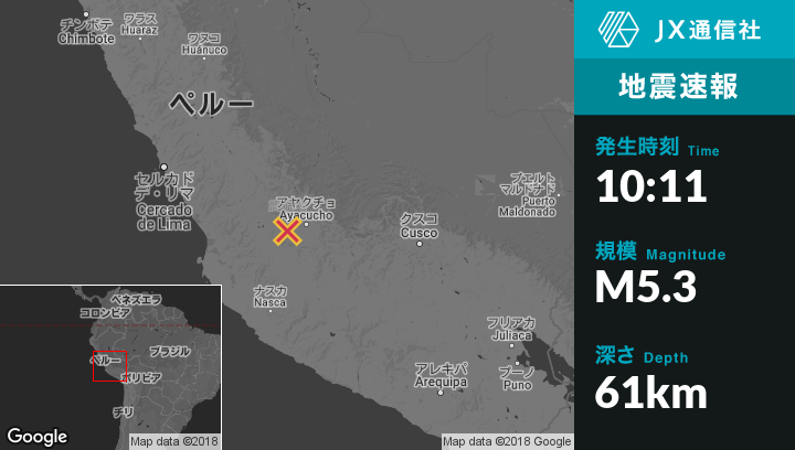| 震源地 | ペルーのAyacuchoから西41kmの地点 |
