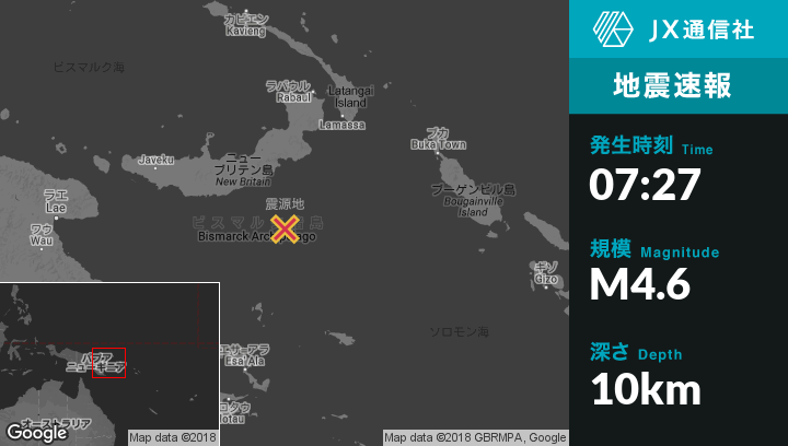 | 震源地 | パプアニューギニアのKimbeから南東213kmの地点 |