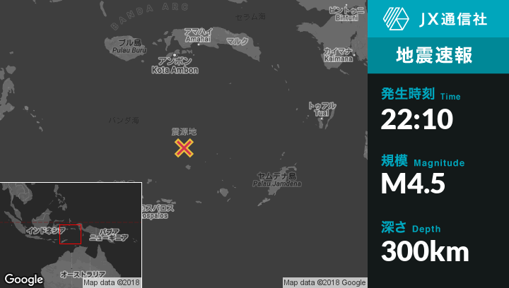 | 震源地 | インドネシアのAmahusuから南301kmの地点 |