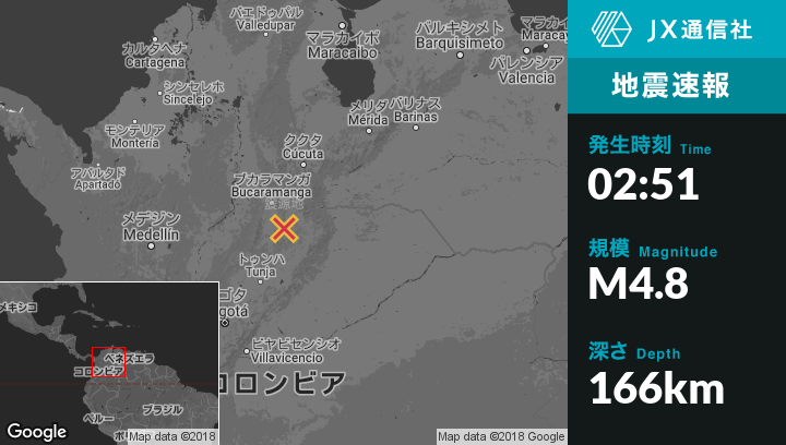 | 震源地 | コロンビアのSan Andresから南南西8kmの地点 |