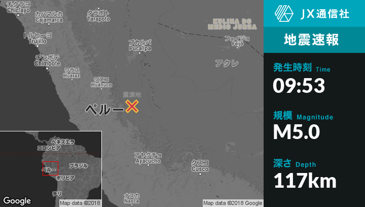 | 震源地 | ペルーのVilla Ricaから東北東43kmの地点 |