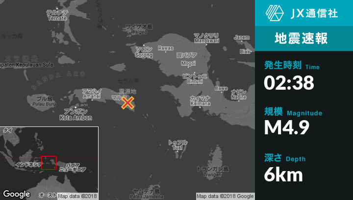 | 震源地 | インドネシアのAmahaiから東178kmの地点 |